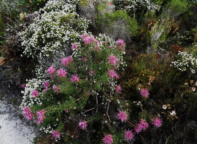 During the wildflower season (September to January) the usually undifferentiated heath around Torndirrup and Frenchman Bay becomes first a mass of white and yellow flowers followed by swathes of blues, purples, oranges, reds, and pinks – the magnificence and timing of each season is dependent on the climactic conditions of each year.