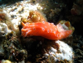 Many people have never seen a live sea slug (or ‘nudibranch’’ the scientific name) or, for that matter, a live sponge in natural underwater habitat. Yet these animals are astonishingly colourful and varied. They live in Frenchman Bay and only intrepid divers are able to appreciate the visual effects. Among the sea slugs (molluscs without a shell) there is a vast variety of body shapes and patterns. Because they have no hard, protective shell they have developed other protective measures such as the capacity to secrete distasteful substances to deter fish, or can rapidly camouflage their bodies. Their vivid colours signal to predators that they are dangerous to eat. If you see them while diving it is best not to touch them.