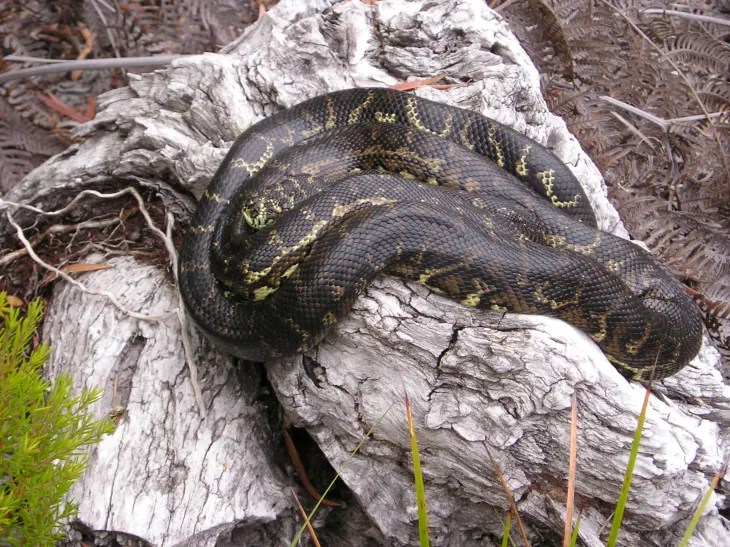 The Southern Carpet Python is found throughout Frenchman Bay. Adults reach two-and-a- half metres in length. It has a striking pattern. Colours vary from greenish brown to a blackish brown. The pythons feed on small mammals and birds and are mainly nocturnal. They are not venomous. Residents at Goode Beach have found pythons in their back yards and sheds. They may be approached and some submit to being handled though others hiss and strike when disturbed. Owing to predation by foxes and feral cats, and land clearing, the python is now gazetted as a threatened species. There have been instances where and motorists have run them over while they crossed a local road.