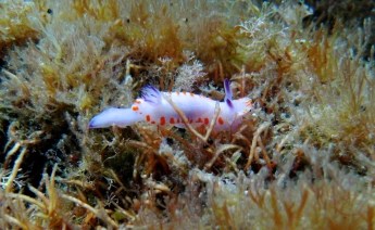 Many people have never seen a live sea slug (or ‘nudibranch’’ the scientific name) or, for that matter, a live sponge in natural underwater habitat. Yet these animals are astonishingly colourful and varied. They live in Frenchman Bay and only intrepid divers are able to appreciate the visual effects. Among the sea slugs (molluscs without a shell) there is a vast variety of body shapes and patterns. Because they have no hard, protective shell they have developed other protective measures such as the capacity to secrete distasteful substances to deter fish, or can rapidly camouflage their bodies. Their vivid colours signal to predators that they are dangerous to eat. If you see them while diving it is best not to touch them.