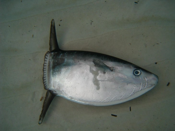 Sunfish are an oceanic species found at depths of up to 300 m. The biology and ecology of sunfish is poorly understood, presumably because individuals have an inaccessible distribution and are rarely observed near land, and also because they are not fishery targets and have low commercial value. However, visitors to Frenchman Bay can sometimes see the corpses of these strange-looking fish on Goode Beach and Whalers Beach in early winter (top images). More than a hundred of these fish litter the beaches in some years. Why is this happening?