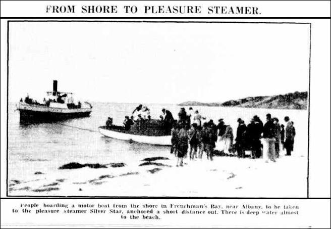 Frenchman Bay was a favoured picnic destination from the late nineteenth century. Access to Whalers Beach was possible only by boat and the enterprising Armstrong and Waters company ferried Albanians to the cove for one shilling per round trip. There were even moonlight cruises. Albany had a strong picnic culture and it was common for people to take large hampers and dress to the nines.
