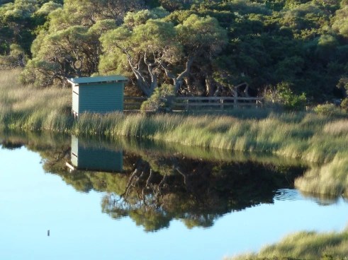 Because Lake Vancouver is fresh water it is not filled with algae and does not support a large population of water birds, though various species fly in from time to time. The ‘signature’ inhabitants are Musk Ducks and their courting rituals are a joy to observe in Spring. The plaintive call of the male Musk Duck can be heard for much of the year by residents. The bird hide is also a contemplative place to be and at dawn or dusk the light and shadows show off Lake Vancouver to those who are able to watch from the bird hide.